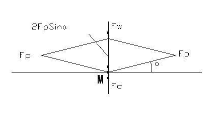 根據受力分析可得到如下結論:FC = FW + 2FP * sinα