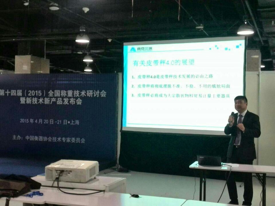 21日上午,展覽館東廳“2015 上海國際衡器展暨技術論壇” 。南京三埃工控股份有限公司國際部負責人王旻向全體聽眾發布了:關于南京三埃公司陣列式皮帶秤獲得全球國際法制計量組織0.2級皮帶秤認證證書的新聞、以及陣列式皮帶秤在英國國家計量院進行OIML R50認證的過程和檢測情況。